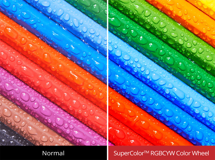 ViewSonic’s proprietary SuperColor™ Technology offers a wider color range than conventional DLPR projectors, ensuring that users enjoy realistic and accurate colors. With an exclusive color wheel design and dynamic lamp control capabilities, SuperColor™ Technology projects images with reliable and true-to-life color performance, in both bright and dark environments, without sacrificing image quality.