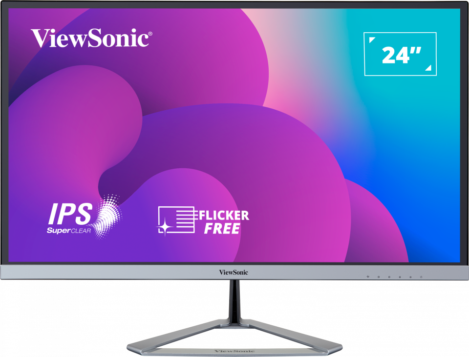 The ViewSonic® VX2476-smhd is a 24” Full HD LCD monitor designed for both office and home use. With SuperClear® AH-IPS Panel technology, this monitor offers best-in-class screen performance with ultra-wide viewing angles. Vivid 1920x1080 resolution and dual speakers, combined with a sleek edge to edge frameless design, deliver an immersive viewing experience for home entertainment and multimedia applications. What’s more, the minimalistic design of this monitor makes it perfect for nearly seamless multi-screen setups. HDMI, VGA, and DisplayPort inputs deliver flexible connectivity options for both computing and gaming environments, while ViewSonic’s exclusive ViewMode feature provides intuitive presets for optimized screen performance in different applications. In addition, Flicker-Free technology,Blue Light Filter, and Low EMI help to minimize eye strain from extended viewing periods. With ViewSonic’s industry-leading 3-year limited warranty, this monitor is a solid long-term investment for enterprise and home applications.