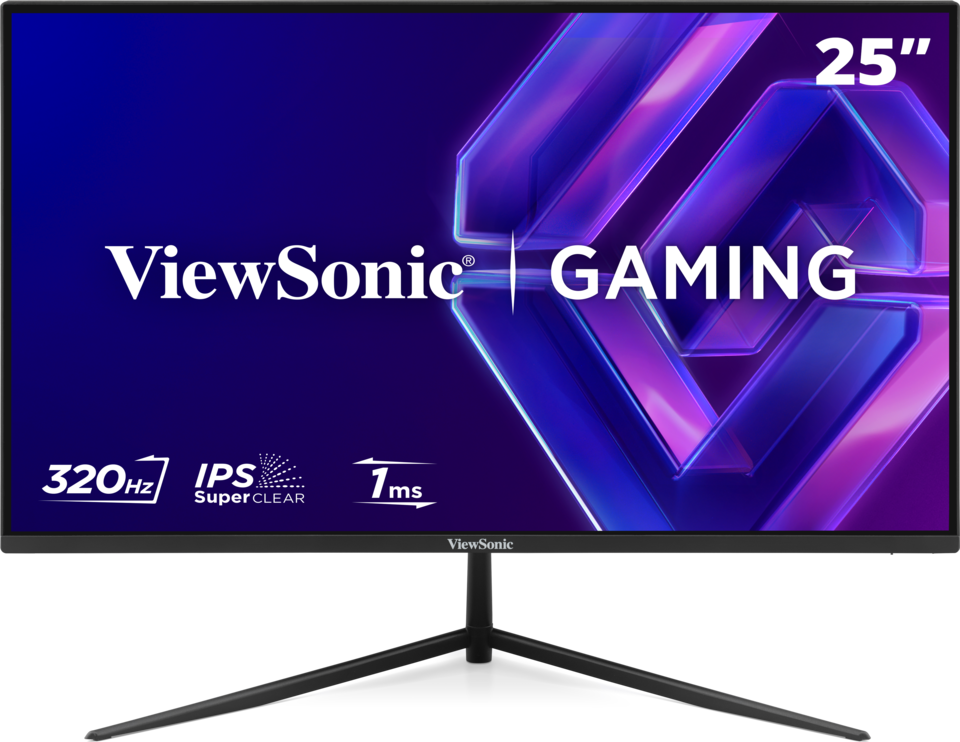 The ViewSonic VX2532 features a 25” FHD display. The hyper-responsive 320Hz refresh rate renders your games with ultra-smooth graphics. The monitor’s variable refresh rate prevents screen tearing and stuttering for fluid gameplay and the 1ms MPRT response time enables you to react in-game with speed and precision. Equipped with SuperClear® IPS technology, it boasts wide viewing angles and breathtaking visuals, perfect for immersive gaming sessions, creative endeavors, and efficient office work. Beyond performance, the monitor's sleek design elevates your workspace aesthetics, combining form and function for a complete package.
