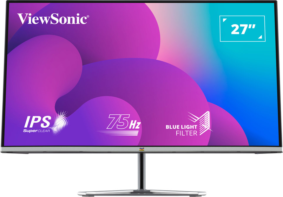 Whether for office use or for enjoying entertainment at home, the ViewSonic® VX2776-SH is designed to take your viewing experience to another level. With a SuperClear® IPS panel and a sleek frameless design, this monitor provides a near-seamless viewing experience ideal for multi-monitor setups. The Full HD resolution boosts efficiency and image detail needed for work or play. A mega dynamic contrast ratio of 80M:1 delivers enhanced image depth for a better user experience. The Built-in HDMI and VGA inputs deliver flexible connectivity options for a wide range of devices.