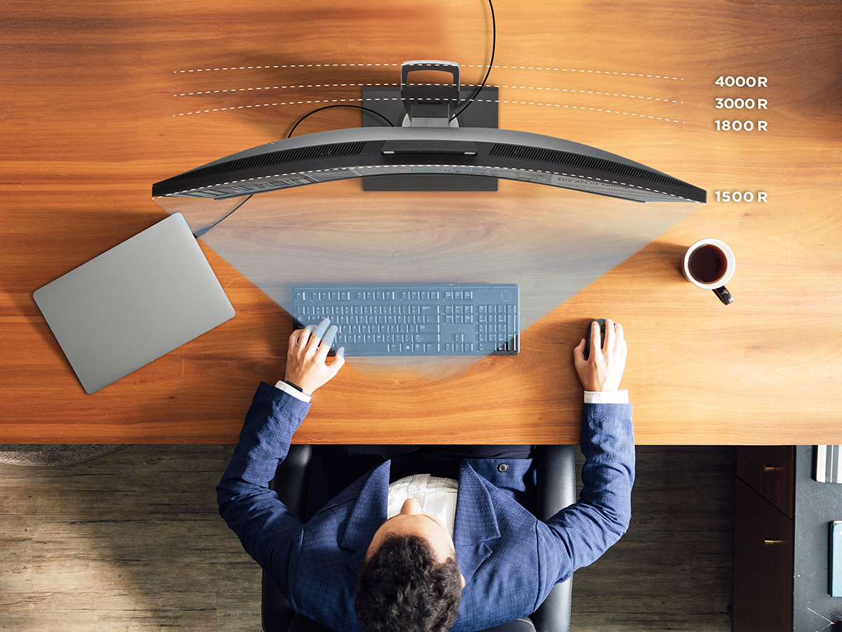 Die 1500R-Krümmung des VG3457CV sorgt für einen gleichmäßigen Sichtabstand über die gesamte Bildschirmbreite – für ein immersives Seherlebnis ohne Ablenkung. Egal, ob Sie an mehreren Aufgaben gleichzeitig arbeiten oder über längere Zeit fokussiert an Projekten sitzen: Der Monitor entlastet Augen und Nacken, fördert eine gesunde Körperhaltung und unterstützt so einen produktiven Arbeitsfluss.
