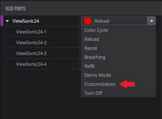 you will see the name of your monitor. Underneath the monitor name, click the ViewSonic LED port to add one color to every LED unit in the designated port. (ex. )