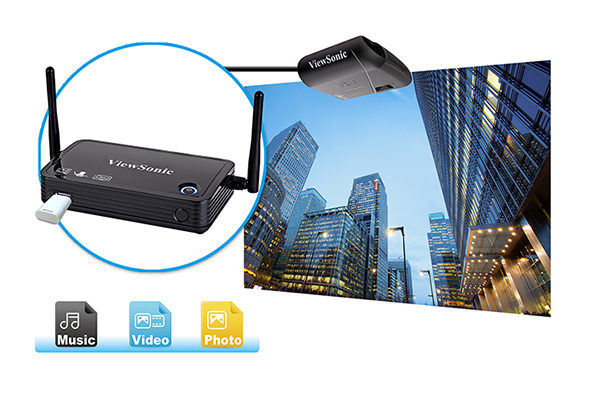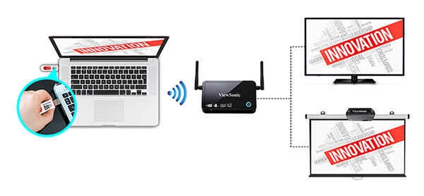 Clé innovante AutoProject™ Prise USB pour présentations sans fil instantanées La passerelle de présentation sans filViewSonic ViewSync 3 offre une fonction pratique AutoProject™ pour présentations sans fil USB. Que vous soyez dans des salles de réunions ou dans des salles de classe, les présentateurs peuvent facilement "brancher et projeter" à partir de leur propres laptops via un dongle USB de projection automatique sans fil, au lieu d'utiliser un câble VGA ou des configurations de présentation sans fil traditionnelles, réduisant le temps de montage et réduisant les procédures monotones.