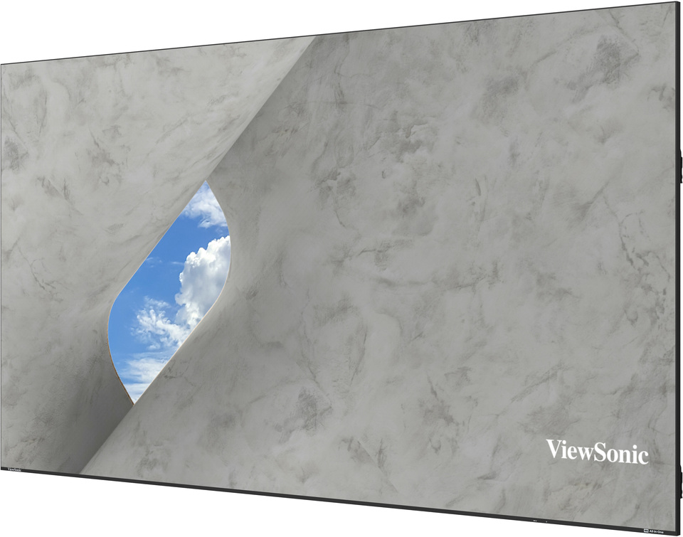 The ViewSonic LDE163G-182 is a 163“ accessible All-in-One LED display designed to deliver impressive visual clarity and dependable performance for corporate, educational, and public settings. A pre-built control box simplifies installation and helps achieve a lighter, more integrated build. The lighter design and slim 52 mm profile make wall mounting easier, while the 99% screen-to-body ratio creates a sleek, bezel-free look that blends seamlessly into modern interiors. Durable Glue-on-Board (GOB) surface protection resists impact, dust, and moisture, achieving IP54 and IK06 ratings for long-lasting reliability in high-traffic areas. The OS architecture restricts access to apps, network connectivity, and user storage to ensure simplified, secure operation and a reliable plug-and-play experience. Q-SYS-certified compatibility enables seamless integration with control systems for unified AV management and smoother workflows, and HDMI CEC support allows automatic power and device synchronization for simplified operation. With 600 nits of brightness and a 6,500:1 contrast ratio, the LDE series delivers vivid, high-impact visuals for meetings, lectures, and presentations.Innovative All-in-One Integration for Effortless Installation