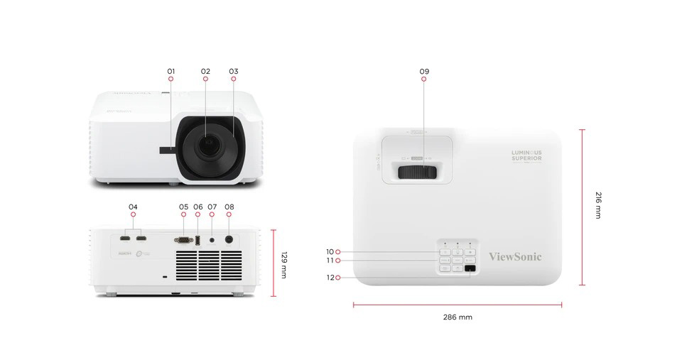 The LSD600W belongs to ViewSonic’s Luminous Superior series, a lamp-free high-brightness projector line up designed for corporate and commercial environments. With its adoption of the 3rd generation laser phosphor technology, it delivers 6,000 ANSI Lumens for up to 30,000 hours, ensuring bright and vivid images without lamp replacement. The lamp-free design offers an eco-friendly and cost-effective solution, while the projector‘s light weight and compact design reduces transportation costs. With up to 300“ projection and high native contrast, it is well-suited for boardrooms, public, and sports simulation spaces. This projector features a 1.3x optical zoom, H/V keystone, 4 corner adjustment, 360° projection, and a portrait mode for easy setup and versatile applications.Bright, Compact, Durable
