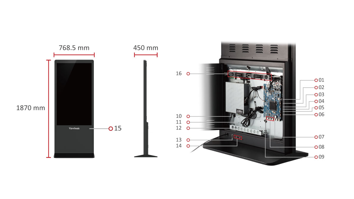 Velmi elegantní a štíhlý volně stojící digitální totem ViewSonic EP5542 je ideálním digitálním zařízením pro působivá vizuální sdělení. Je navržen se skleněnou čelní deskou odolnou proti poškrábání a poskytuje nepřekonatelnou viditelnost bez ohledu na prach nebo okolní světlo. Panel 4K UHD IPS je vybaven dvěma 10W stereo reproduktory, širokým pozorovacím úhlem 178° a jasem 450 nitů, takže promítá ostré a živé obrázky a videa, která zaujmou dav. Model EP5542 umožňuje bezproblémové přehrávání multimédií díky vestavěnému čtyřjádrovému přehrávači médií a interní 16GB paměti. Stvořen pro snadné dálkové ovládání, správu obsahu a dalších zařízení odkudkoli prostřednictvím aplikace vController integrované s RS232 a LAN.