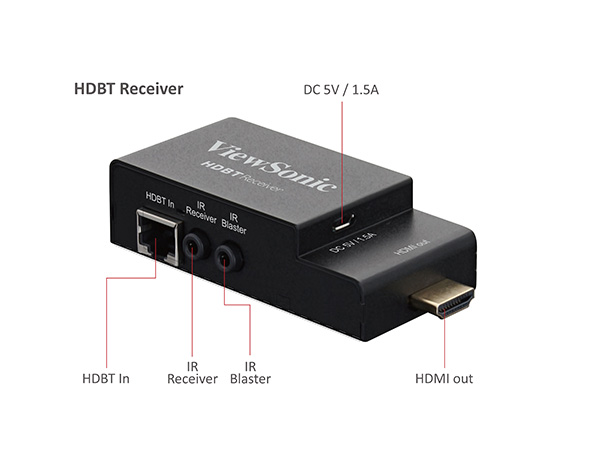 Der HDBT Empfänger in Miniaturbauform mit integriertem HDMI-Anschluss lässt sich nahtlos in nahezu jedes Anzeigegerät mit einem HDMI-Eingang integrieren. Diese umfassen Fernsehgeräte, Großanzeigen, Digital Signage Systeme und Projektoren.