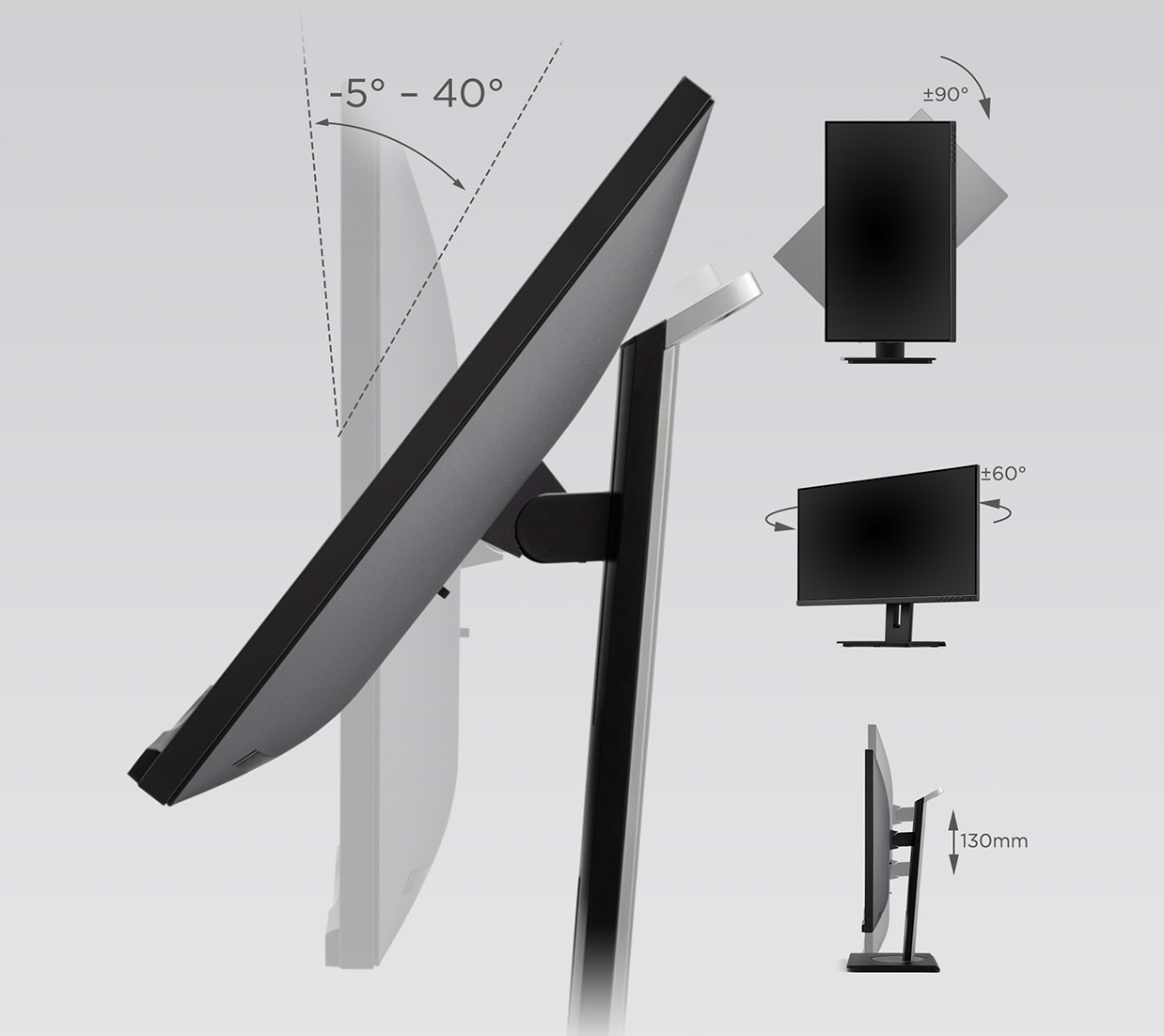Advanced ergonomic features including tilt, swivel, pivot, and height adjustment help provide a greater range of customization for improved comfort and productivity.