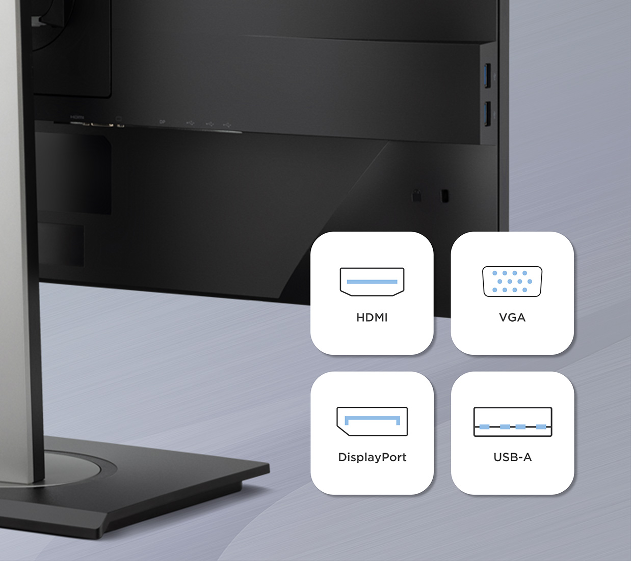 Additional HDMI, DisplayPort, and VGA inputs support connecting laptops, desktops, and other devices. A built-in USB hub with four USB-A ports makes it easy to plug in accessories like keyboards, webcams, and storage drives, helping you stay productive and organized.
