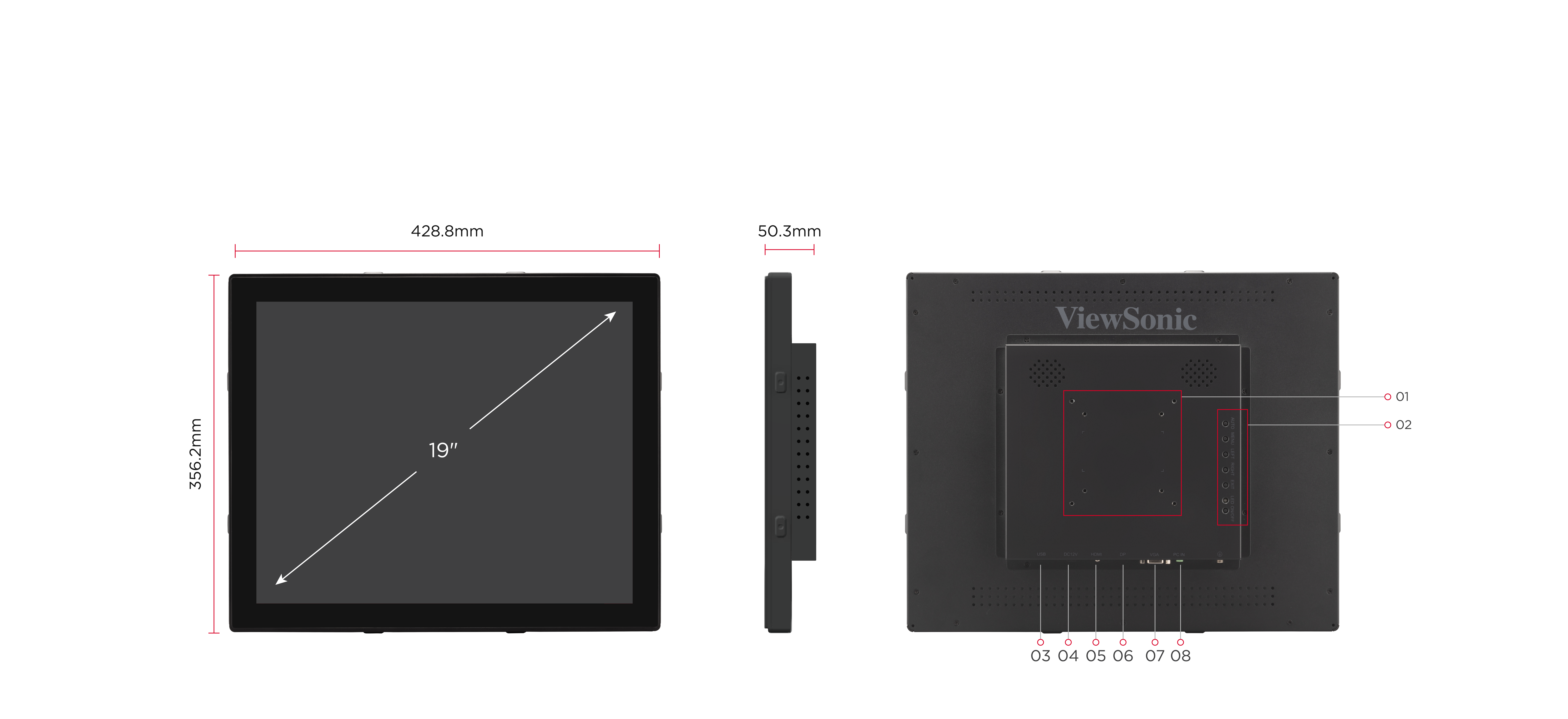 The ViewSonic XF1940 is an open-frame monitor designed for commercial and industrial applications, such as manufacturing, ensuring reliable 24/7 operation. Its durable 3mm thick glass screen protects against moisture and scratches, ensuring long-lasting performance. The intuitive 10-point PCAP touch technology delivers smooth, responsive interaction, enhancing the user experience. With versatile connectivity options, including HDMI, DisplayPort, and VGA, content sharing is simple and seamless. The VESA-compatible design allows for flexible installation on any surface or orientation. Optional features include a wide operating temperature range from -30°C to 85°C for demanding environments, stylus support with either EMP or MPP technology, and a light sensor that adjusts screen brightness for optimal visibility and energy efficiency.Reliable Touch Monitor for Any Application