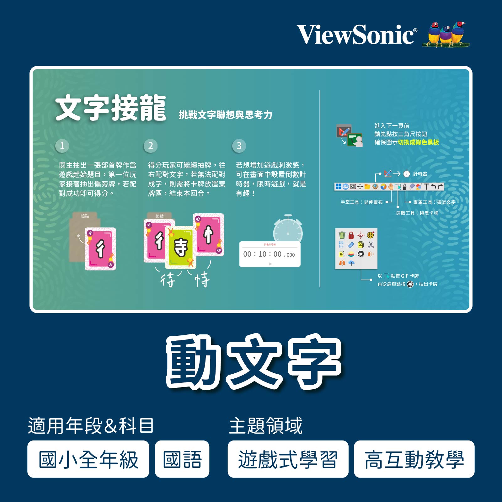 ViewSonic x 南一書局,全新企劃全年級適用的數位桌遊,多款桌遊一次擁有,跨學層跨領域,國語文到數學與邏輯思考,不容錯過的精彩課程。