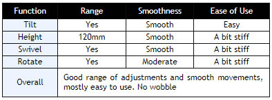 There is a decent set of ergonomic adjustments offered from this screen. Tilt is smooth and easy to use and offers a reasonable range of adjustment as you can see from the above pictures.