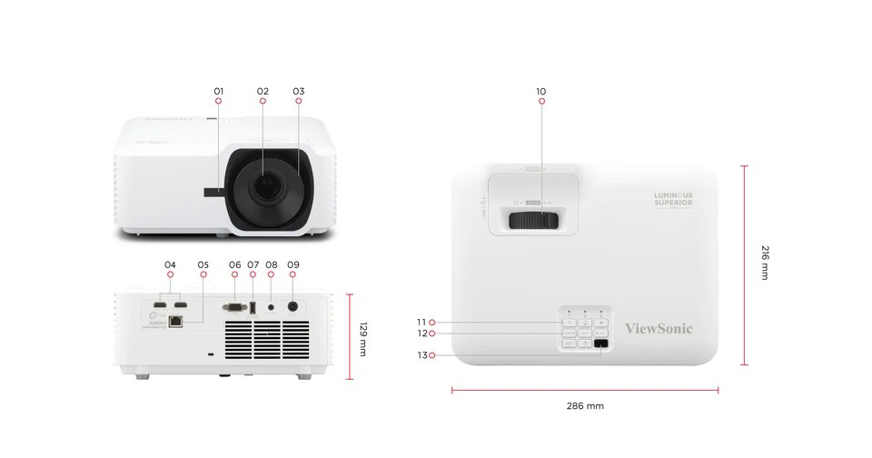 The LSD500HD is part of ViewSonic’s Luminous Superior Series, a lamp-free projector lineup designed for corporate and commercial environments. This DLP projector uses 3rd generation laser phosphor technology, delivering a brightness of 5,500 ANSI Lumens for up to 30,000 hours. It can project up to a 300” ultra-large screen in 1080p Full HD resolution with high native contrast. Its comprehensive LAN control enables centralized management, making it ideal for boardrooms, public, and sports simulation spaces. Its lamp-free design offers an eco-friendly and cost-effective solution with less power consumption, while its lightweight and compact build reduces transportation costs. This projector offers flexible setup, equipped with features like a 1.3x optical zoom, H/V keystone, and 360° projection capabilities, possibilities.