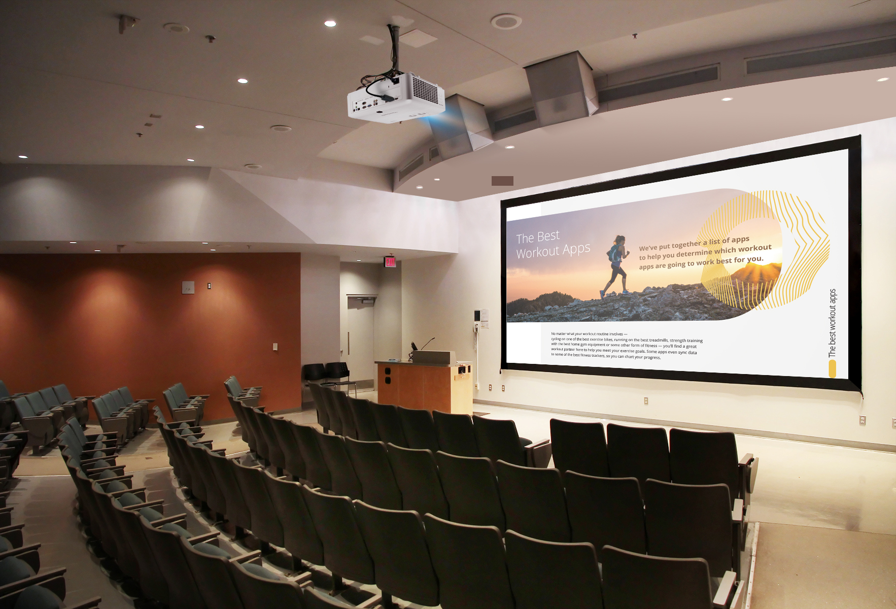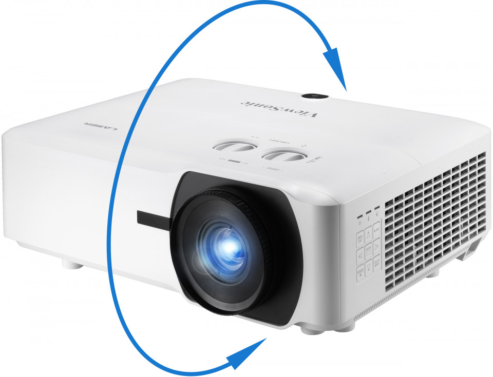 Le vidéoprojecteur peut pivoter librement à n'importe quel angle vertical pour faciliter les applications créatives, permettant la projection sur des plafonds, des murs ou des panneaux inclinés.