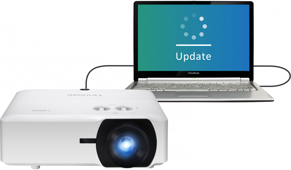 ViewSonic Projector Software Update est disponible en ligne et vous permet de maintenir le micrologiciel de votre projecteur à jour facilement et commodément avec votre ordinateur portable et une connexion par câble USB ; plus besoin d'amener votre projecteur dans un centre de service pour les mises à jour logicielles.