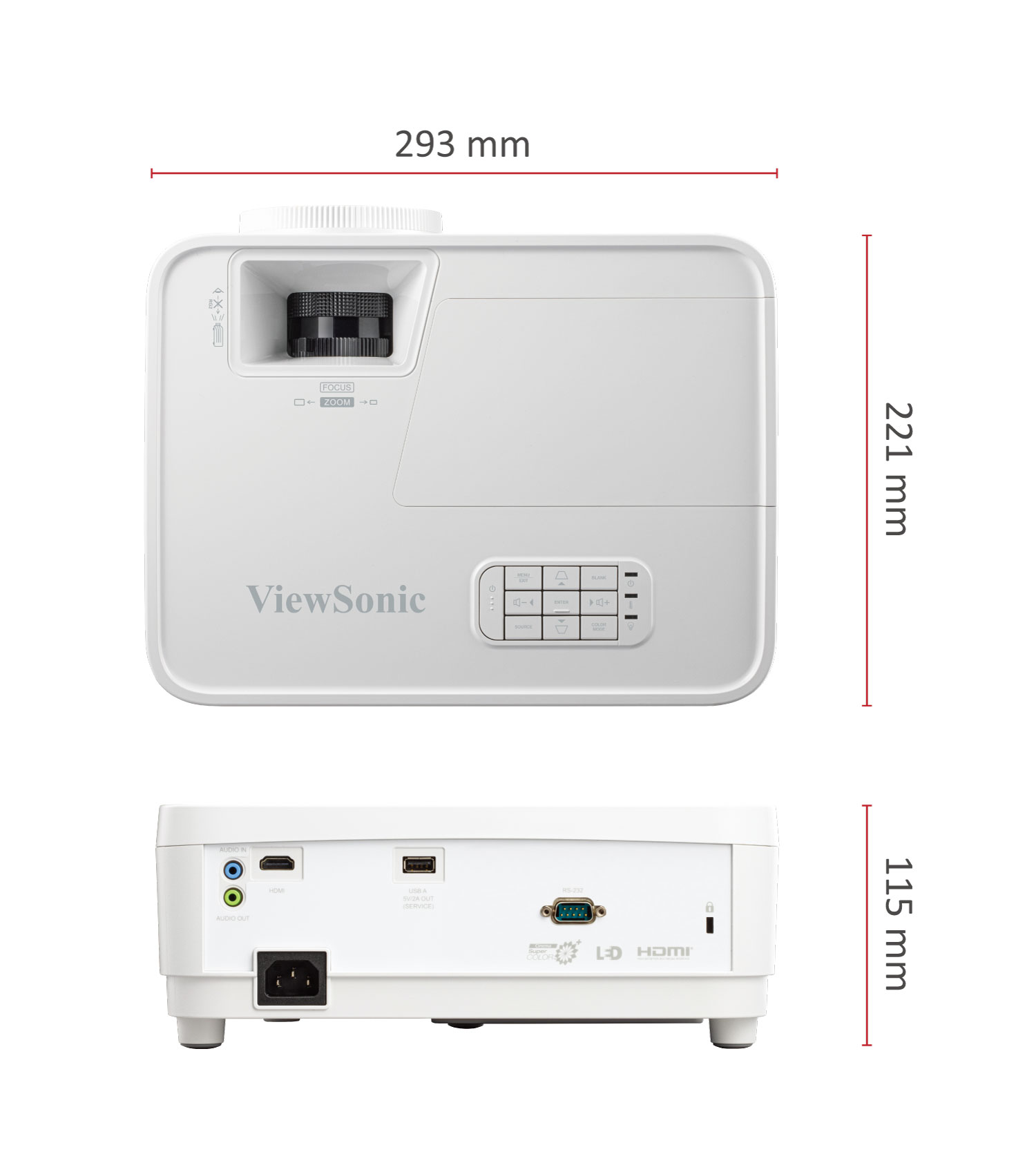 | Dimensions (LxPxH) avec le pied de réglage: | 293x221x115mm |