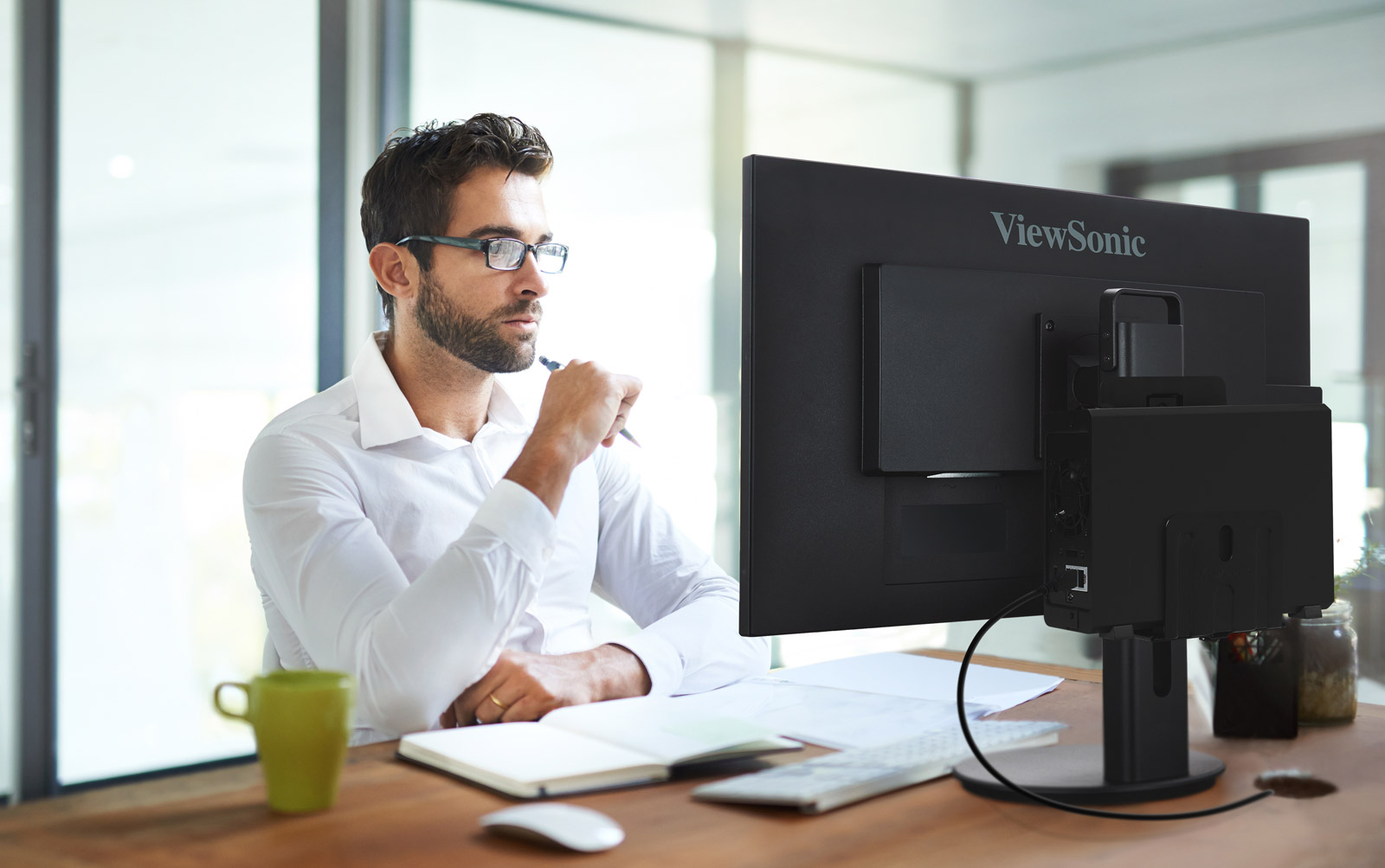 Client Mount sits at the back of your monitor, keeping clutter and cables out of sight to maintain a neat and organized desk space.