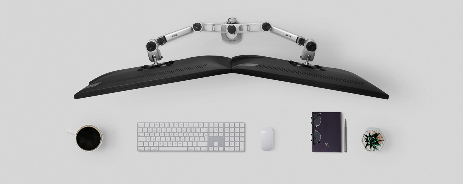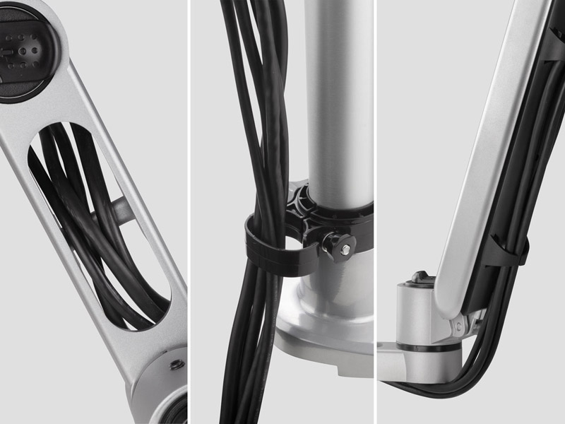 Space-saving design routes cables neatly under arm to keep clutter and cables out of sight to maintain a neat and organized desk space.