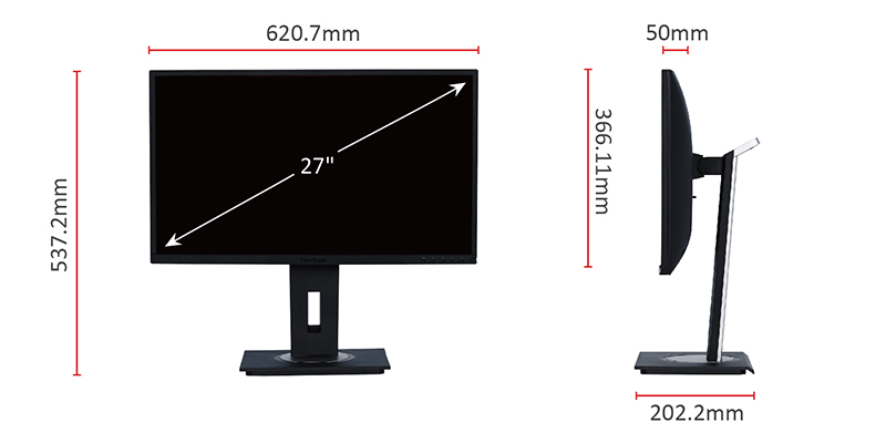 Physical without stand (mm): 620.7 mm (W) x 366.1mm (H) x 51.1 mm (D)