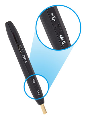 For high-definition viewing, the ViewSync® WPG-300 provides a shared HDMI and MHL interface for connectivity to diverse receiver devices such as projectors, TVs and monitors. A user-friendly switch allows users to easily toggle between MHL and HDMI modes (HDMI mode must be with USB charging port).
