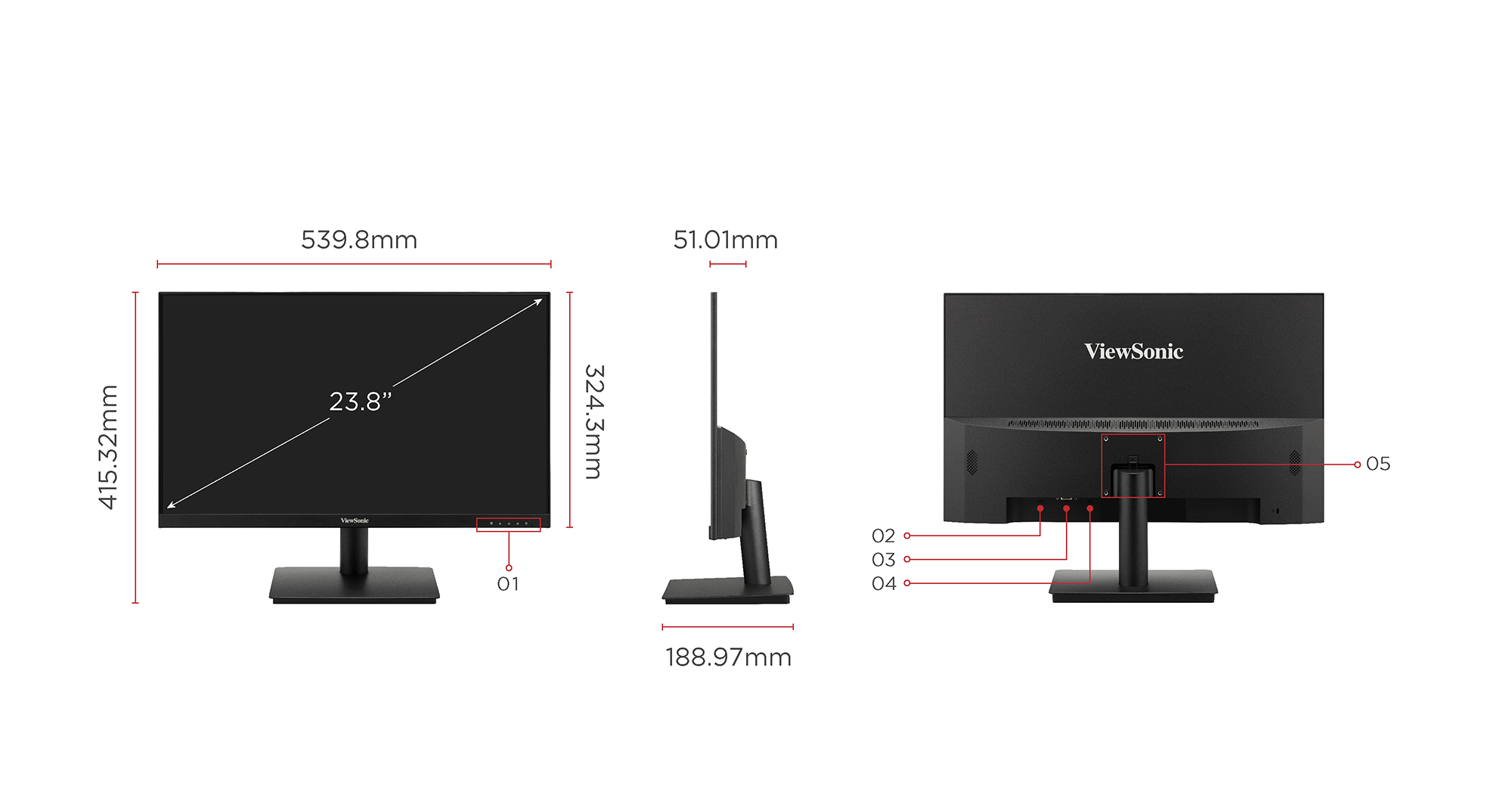 Conveniently mount the monitor to your preference by utilizing the 75mm x 75mm VESA-compatible mount design.75mm x 75mm VESA mount