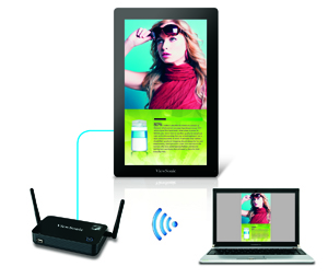 藉由ViewSonic ViewSync WPG-370無線投影伺服器,使用者可以透過筆電或手機將Full HD 1080p高畫質影音內容無線傳輸至大型數位廣告看板或直立式海報機,體驗無線傳輸的便捷,適用於任何大型商業廣告環境。