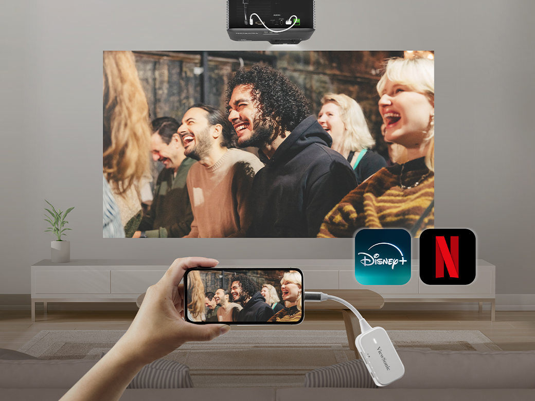 Enhance your projector with the WPD-700 Wireless Screen Casting Kit for seamless content sharing. The WPD-700 enables you to enjoy unlimited content wirelessly from Netflix, Disney+, and more without the frustration of having a black screen after casting DRM-protected content.