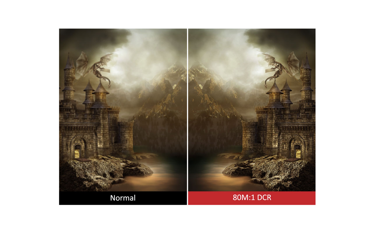A mega dynamic contrast ratio of 80M:1 creates depth in images by adding more definition to the darkest and brightest colours on the screen to ensure images on VX3211-4K-mhd are shown with the finest details.