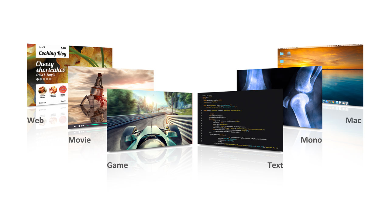 ViewSonic’s exclusive ViewMode offers specialized presets to fit different usage scenarios including: “Game”, “Movie”, “Web”, “Text”, “Mac”, and “Mono” modes. These presets enhance gamma curve, colour temperature, contrast, and brightness to deliver the optimal viewing characteristics for each application.