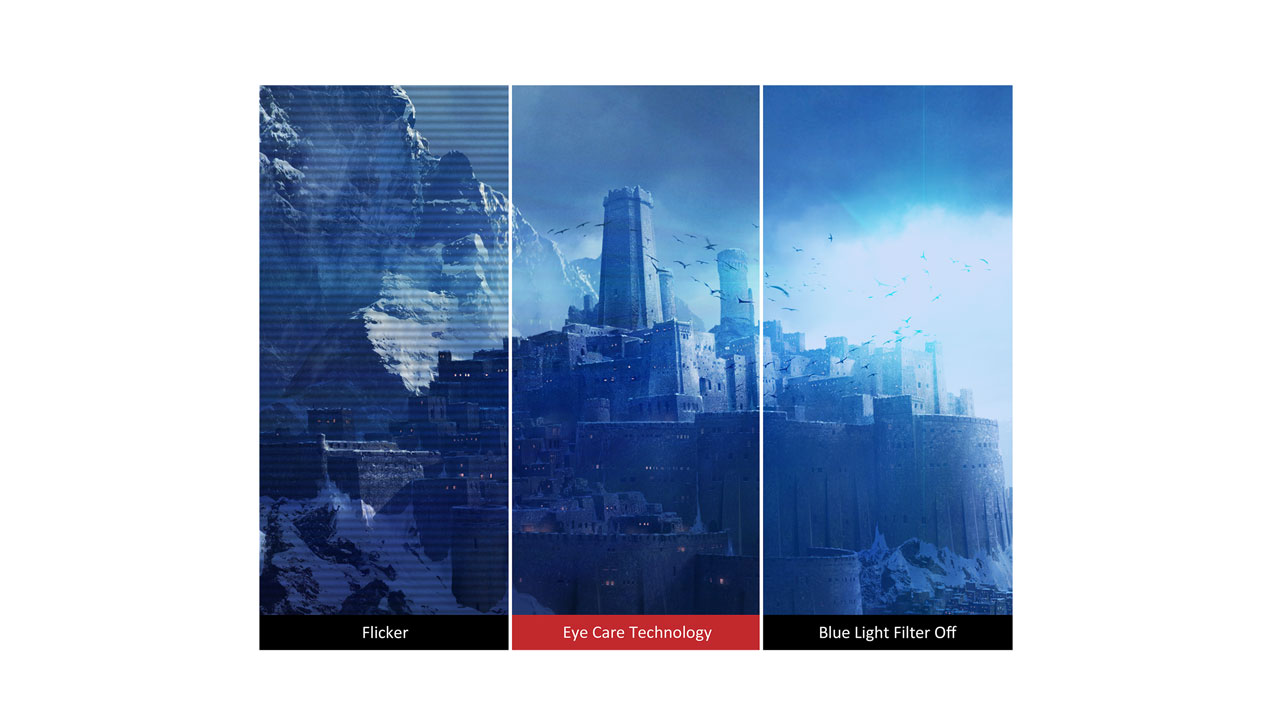 Flicker-Free technology and Blue Light Filter minimize eye strain over extended viewing periods.
