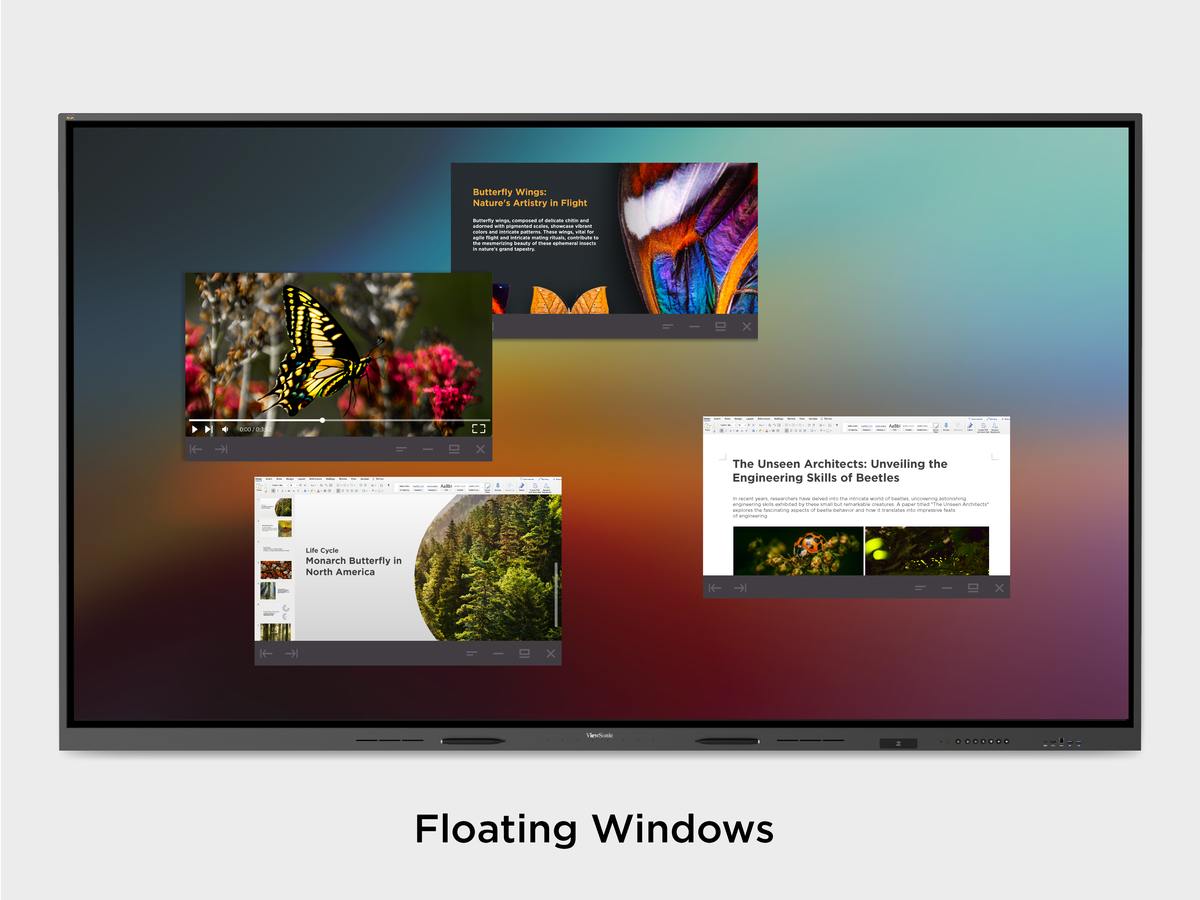 - Effortless collaboration and multitasking on the 110” screen with floating windows
