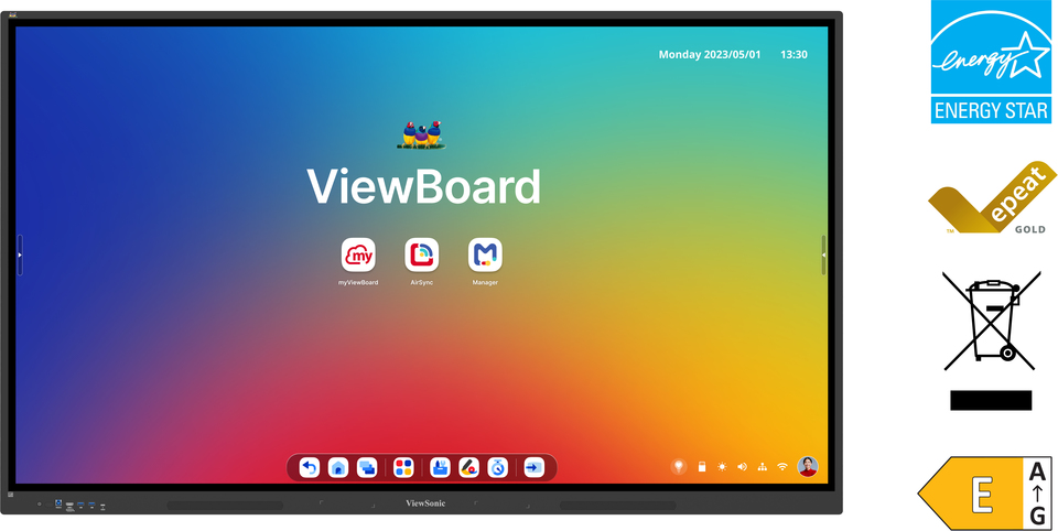 Start your EdTech journey right with the ViewBoard IFP34 Series, designed with enhanced writing functionality and optimized power efficiency to meet the needs of K12 and higher education. Powered by EDLA-certified Android 14, it offers a smooth, secure user experience with full access to the Play Store for endless educational and productivity apps. Integrated ViewSonic Education Software takes it even further, adding powerful tools for digital whiteboarding, wireless casting, and centralized device management. Together, these features empower educators to create engaging, interactive learning environments, all while simplifying classroom workflows.Drive Sustainability in Every Classroom