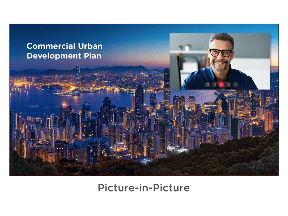 Video conferences and online collaborations will now be more flexible and creative with the LED display’s intuitive split screens. The display can support Picture-by-Picture (up to 4 different inputs) or Picture-in-Picture (a screen within another screen) scenarios in real-time*.