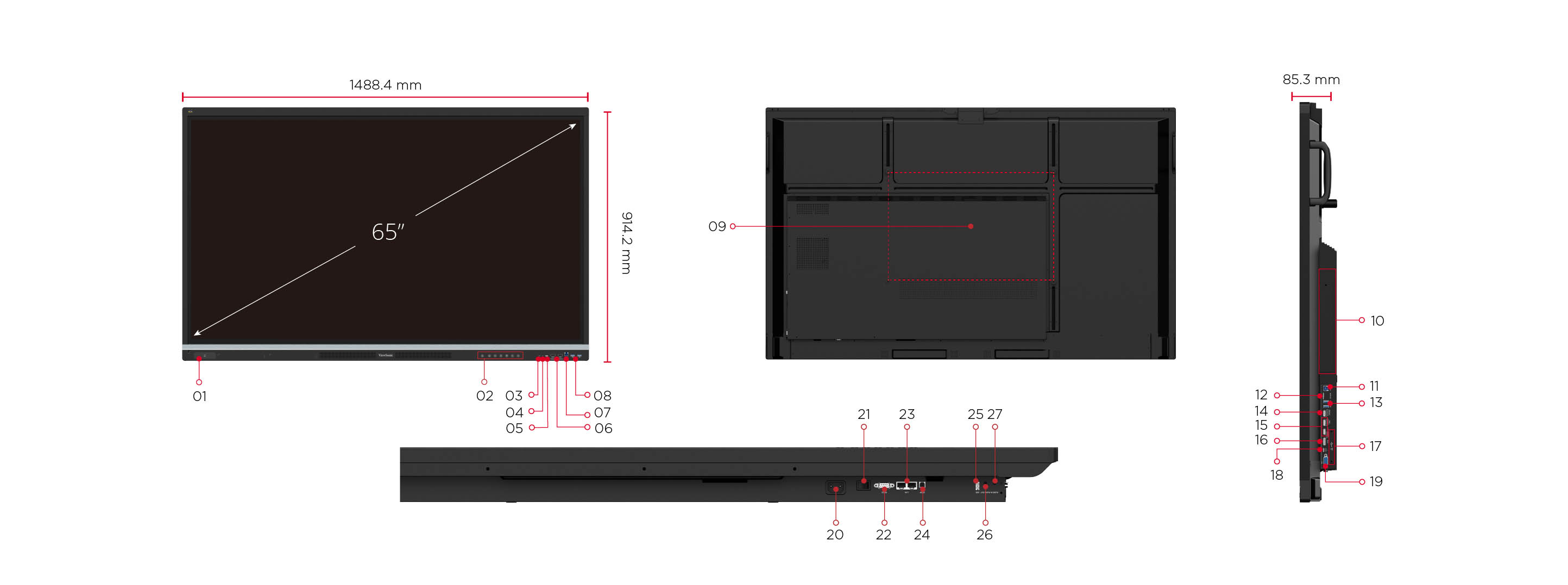 ViewSonic Launcher: Yes - Fitur spesialAll-in-one USB port: USB 3.2 Gen 1 “SmartPort USB” to all channels