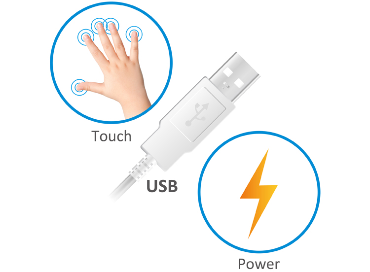 Flexible to use. Connect the USB cable from the PJ-vTouch-10S to any available USB port on the laptop, and USB can also be the PJ-vTouch-10S power supply.