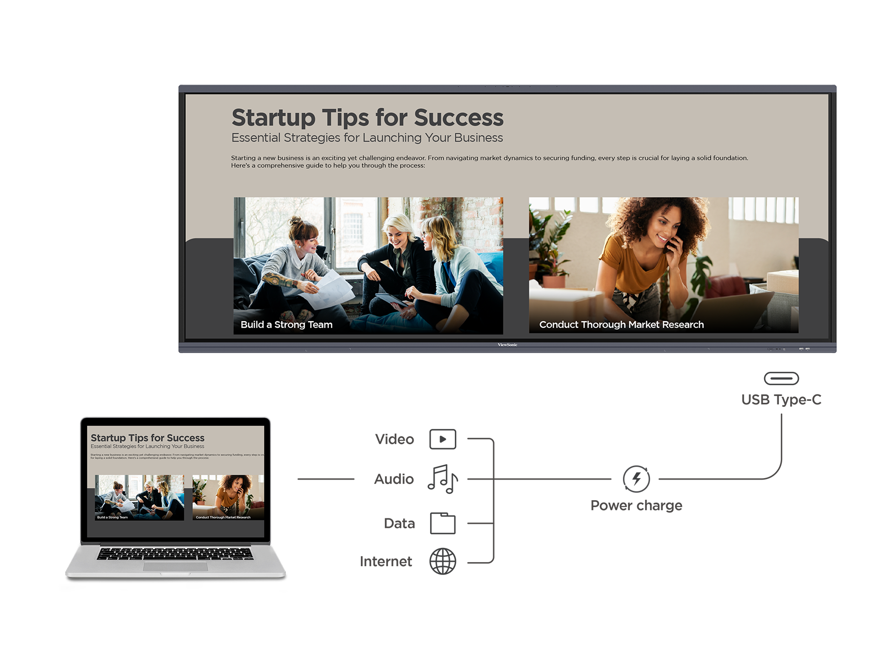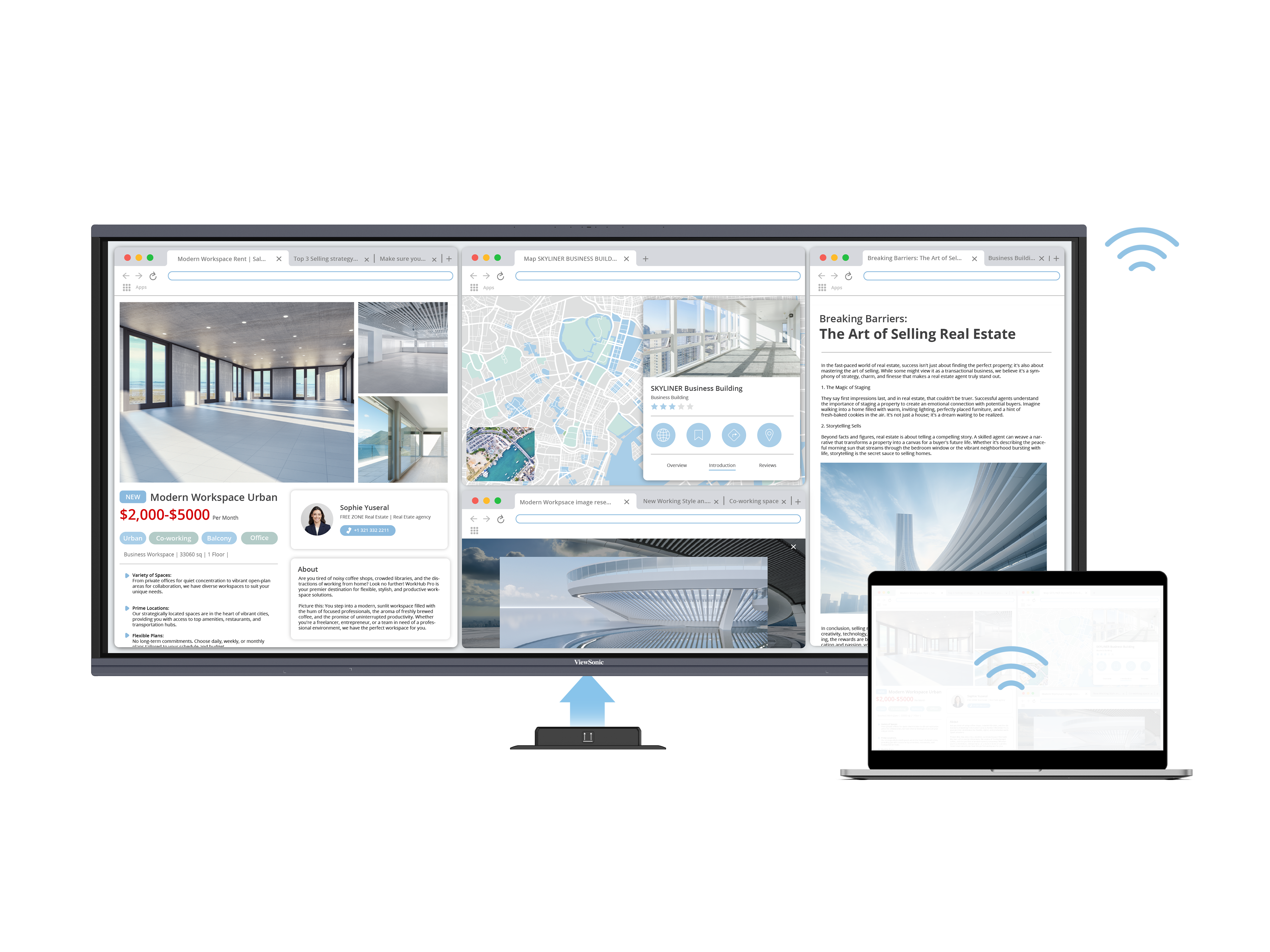 Enjoy instant, simultaneous wireless screen sharing of up to 9 devices through vCast for effective communication and efficient collaboration during team meetings.
