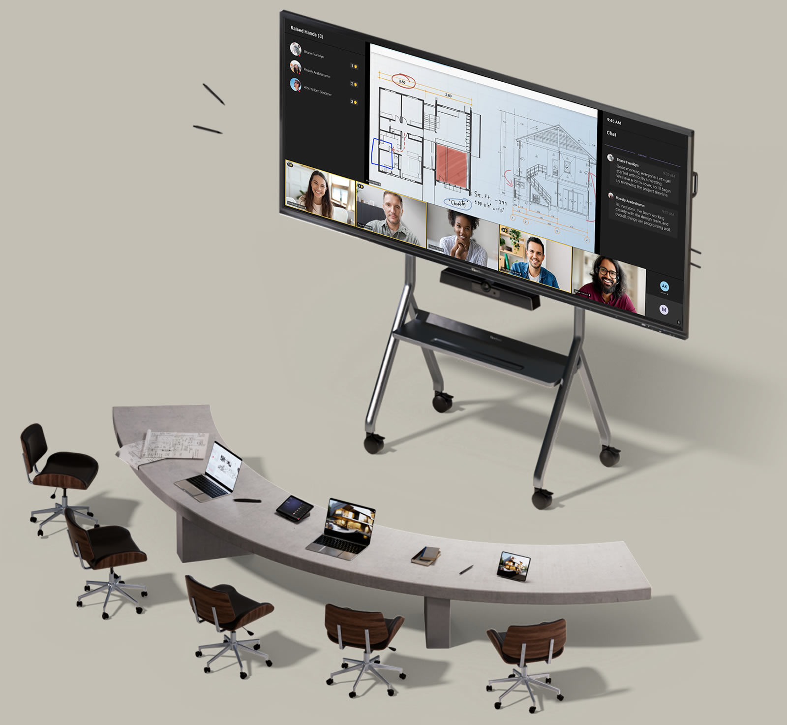 Enhance inclusivity in hybrid meetings with an ultrawide display optimized for Microsoft Teams Rooms Front Row mode, simultaneously showcasing remote attendees, content, and chat—all on one screen.