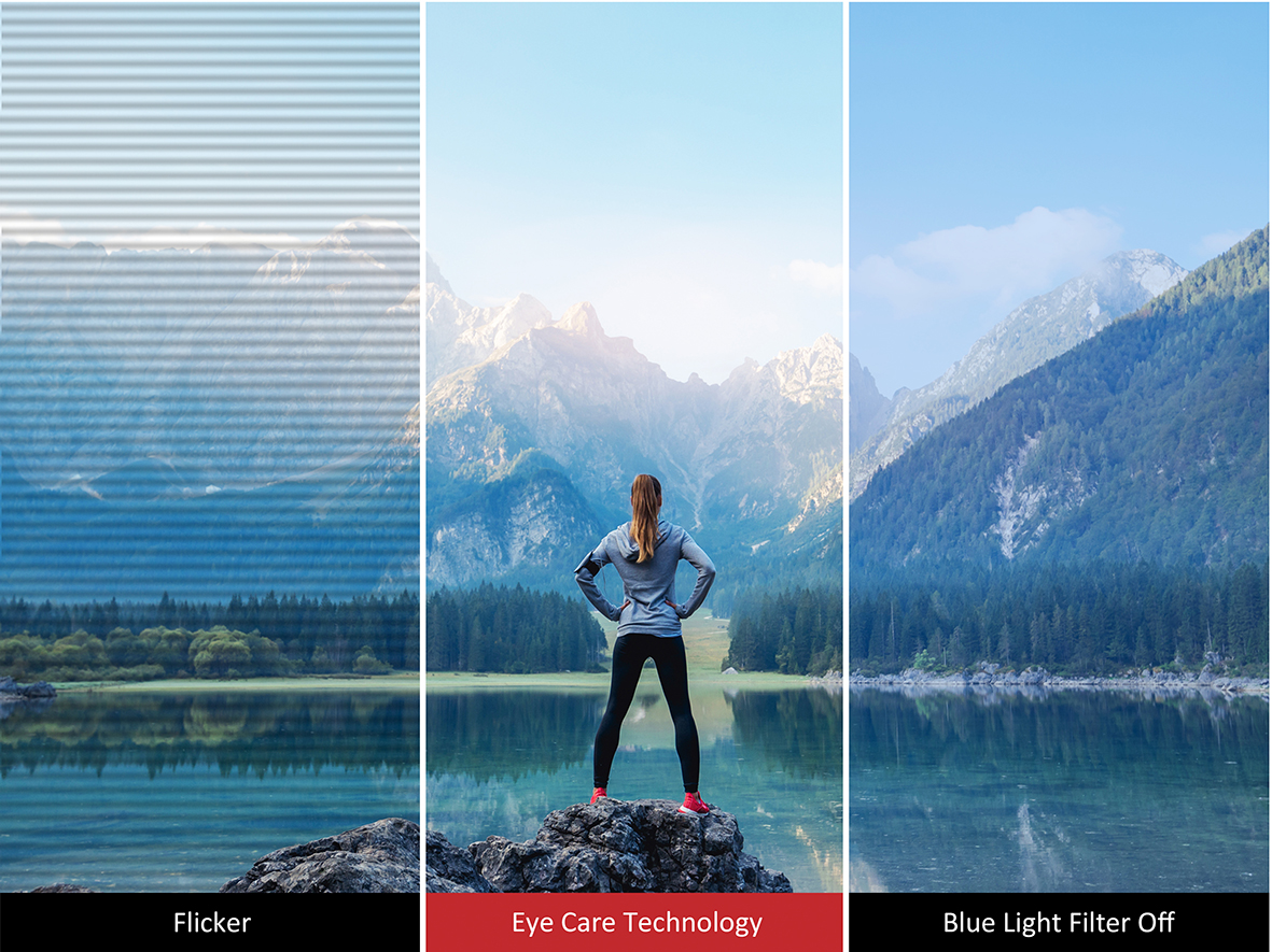 Flicker-Free technology and a Blue Light Filter help eliminate eye strain caused by harmful light rays and periods of extended viewing.