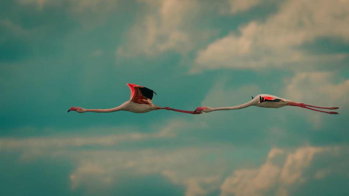 This photograph takes us above the clouds, giving us the feeling of flying amongst these majestic birds.