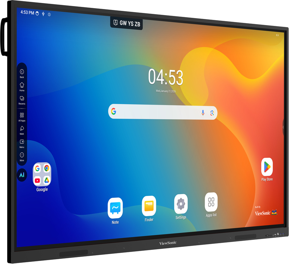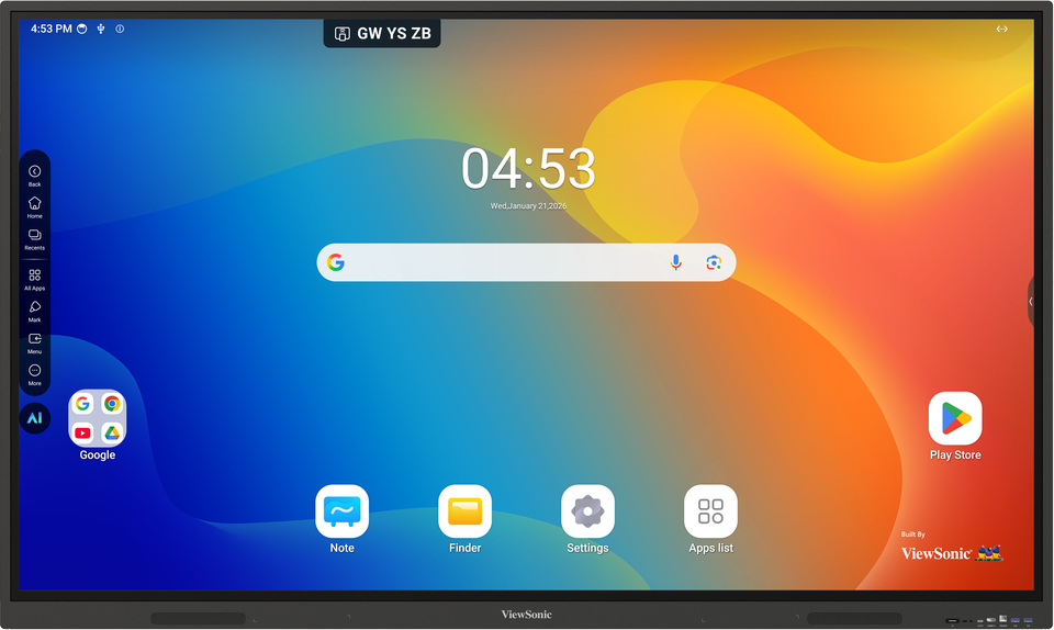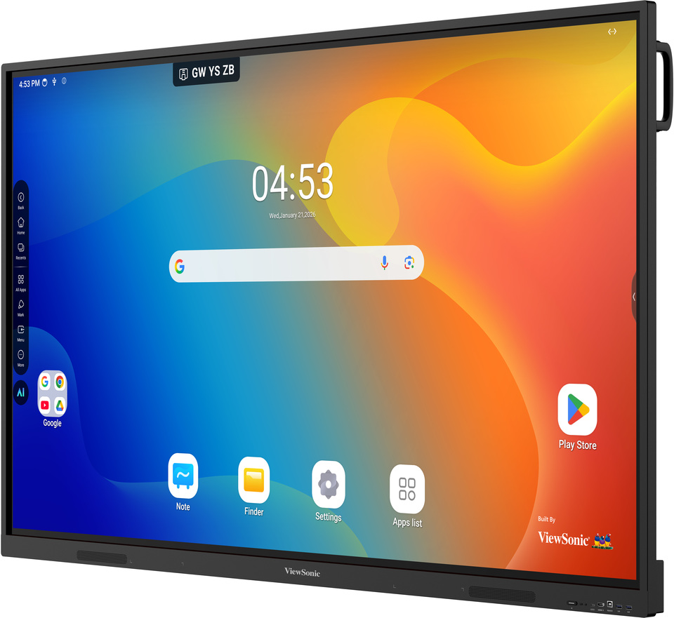 The ViewBoard IN05 series interactive flat panel, powered by the Android™ Enterprise Device License Agreement (EDLA), integrates Android™ 16 and Google Play Store access for secure and enriched learning experiences. It features 4K UHD resolution with advanced bonding technology for vibrant colors and reduced glare. The 50-point Ultra Fine Touch touchscreen enables intuitive collaboration with fingers or dual-tip pens, while built-in speakers and one USB-C port enhance user convenience.Android 16 Powered Performance