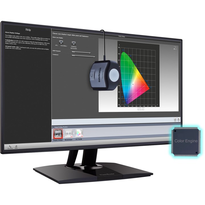 據 ViewSonic 指出,這一款顯示器能顯示 99% 的 sRGB,只不過我的校正套件卻說高達 100%… 看你信不信了。能有一台可以顯示所有預期色彩的螢幕,的確讓我不再煩惱編輯影像的時候會出問題。每一台顯示器用久了都會出現色偏,因此必須想辦法重新校正螢幕。還好這一款顯示器的 Colorbration Kit 可以作為硬體校正的方法 — 這款套件是 ViewSonic 與合作夥伴 X-Rite 針對此系列顯示器共同研發。X-Rite 是一家供應跨裝置色彩一致性校正工具的知名公司。如果不打算使用 Colorbration Kit,還可以使用 X-Rite CS-XRi1、I1 Display pro 及 I1 Pro2 校正器。