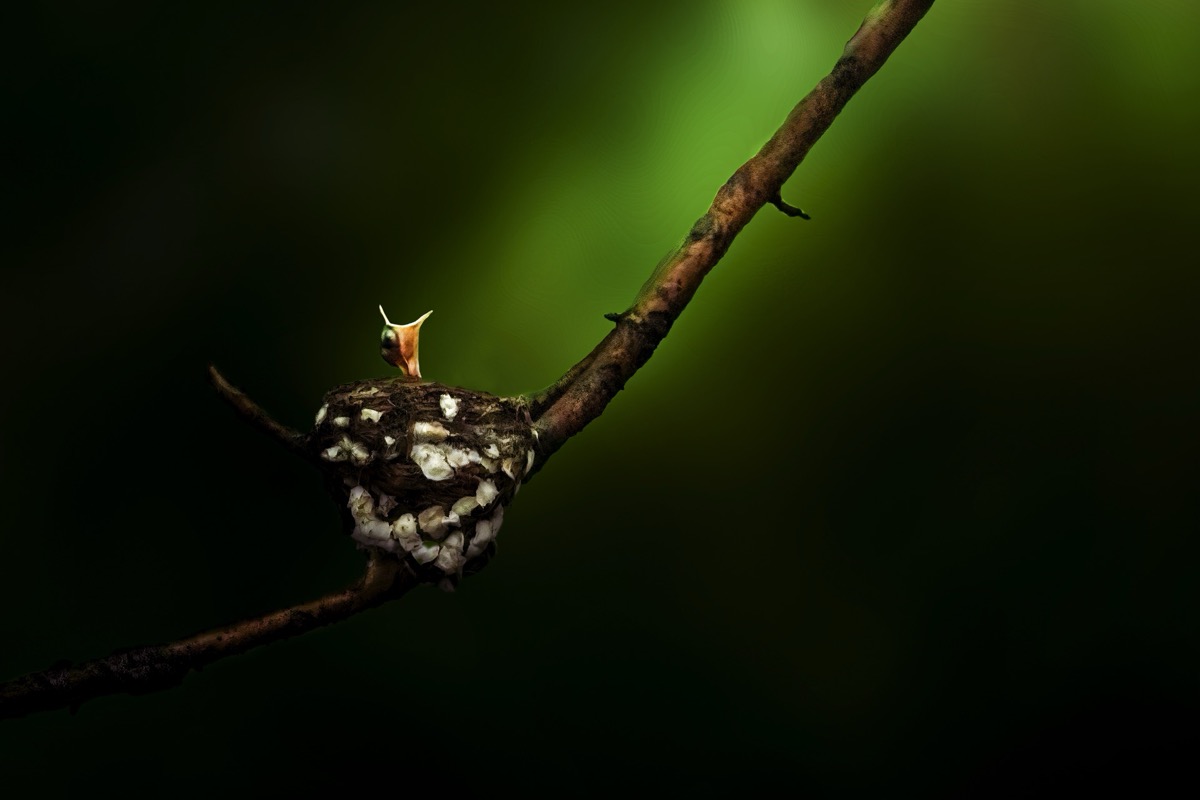 This photograph takes us above the clouds, giving us the feeling of flying amongst these majestic birds.