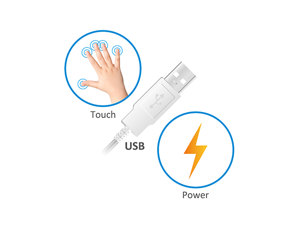 Flexible to use. Connect the USB cable from the vTouch to any available USB port on the laptop, and USB can also be the vTouch power supply.