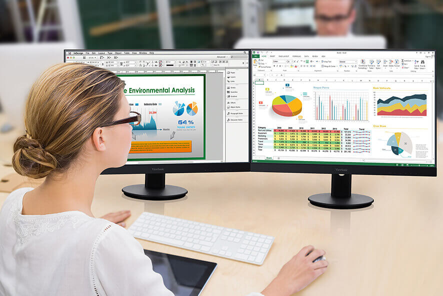 La tecnologia SuperClear Premium di ViewSonic offre colori e immagini vivaci, mentre il design dello schermo frameless offre un'esperienza visiva senza interruzioni nelle configurazioni multi-schermo. L'esclusiva tecnologia ViewMode di ViewSonic, offre comodi preset del colore per migliorare il comfort visivo e ottimizzare le prestazioni dello schermo in ogni ambiente di lavoro. Inoltre, la tecnologia Flicker-Free e il filtro Blue Light aiutano ad eliminare l'affaticamento oculare dovuto a periodi di visione prolungati.