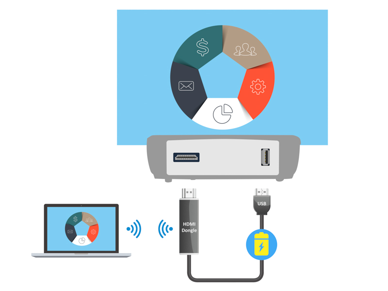 Per alimentare i dongle wireless HDMI è possibile utilizzare la porta USB 5V/1,5A incorporata, senza la necessità di collegare adattatori esterni per la trasmissione dei tuoi contenuti multimediali preferiti.