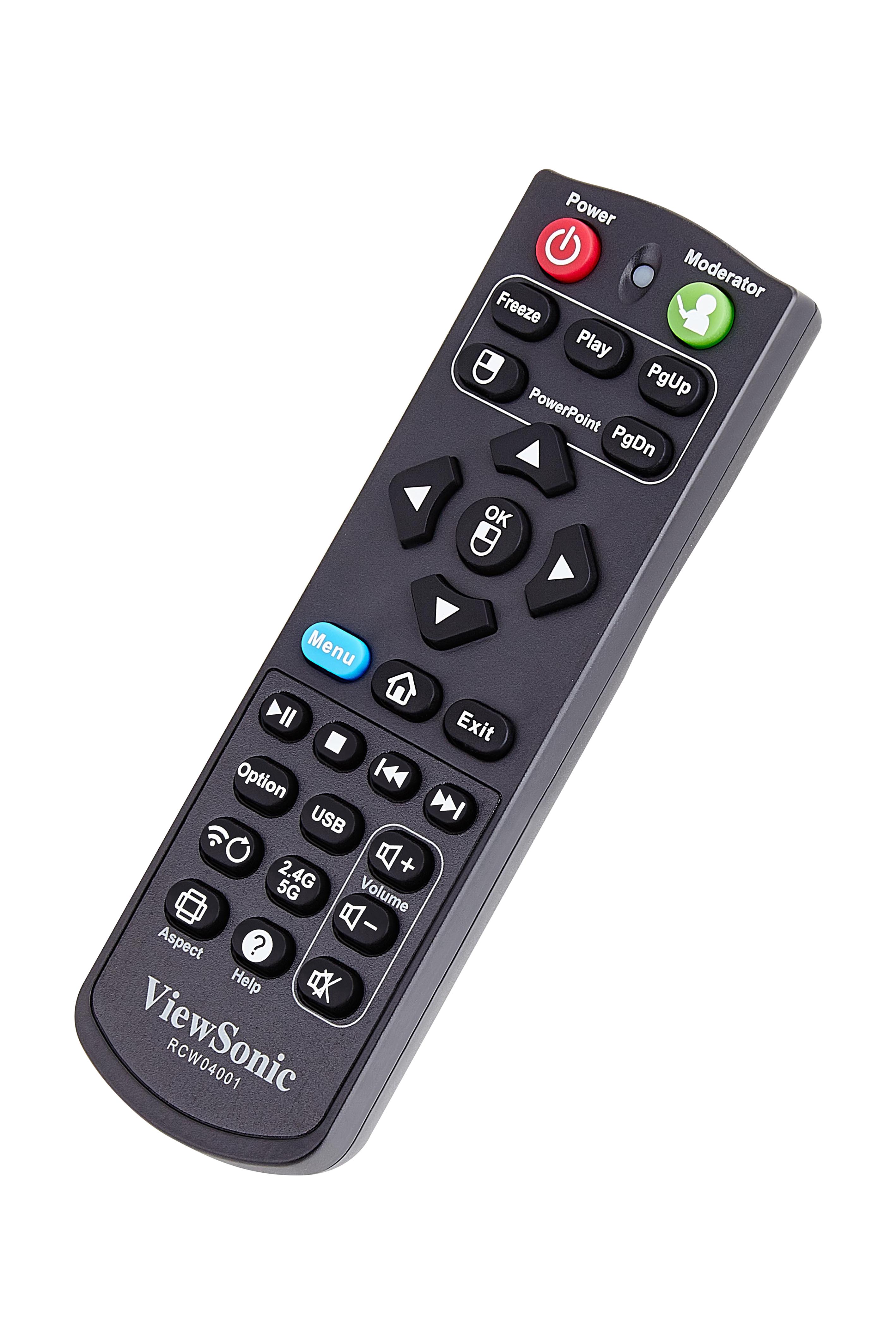 Finding a function through the on-screen menu can be time-consuming. To make things easier, this remote control contains hotkeys for critical, major functions. The major functions include Moderator, USB reader, and wireless presenter functions (mouse control, page up-n-down, screen freeze, etc.).