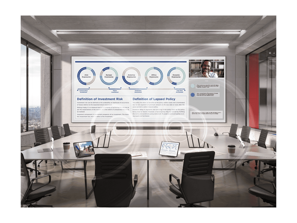 Deliver compelling presentations that captivate your audience with the display's dual sets of 30W speakers, ensuring powerful and clear sound.