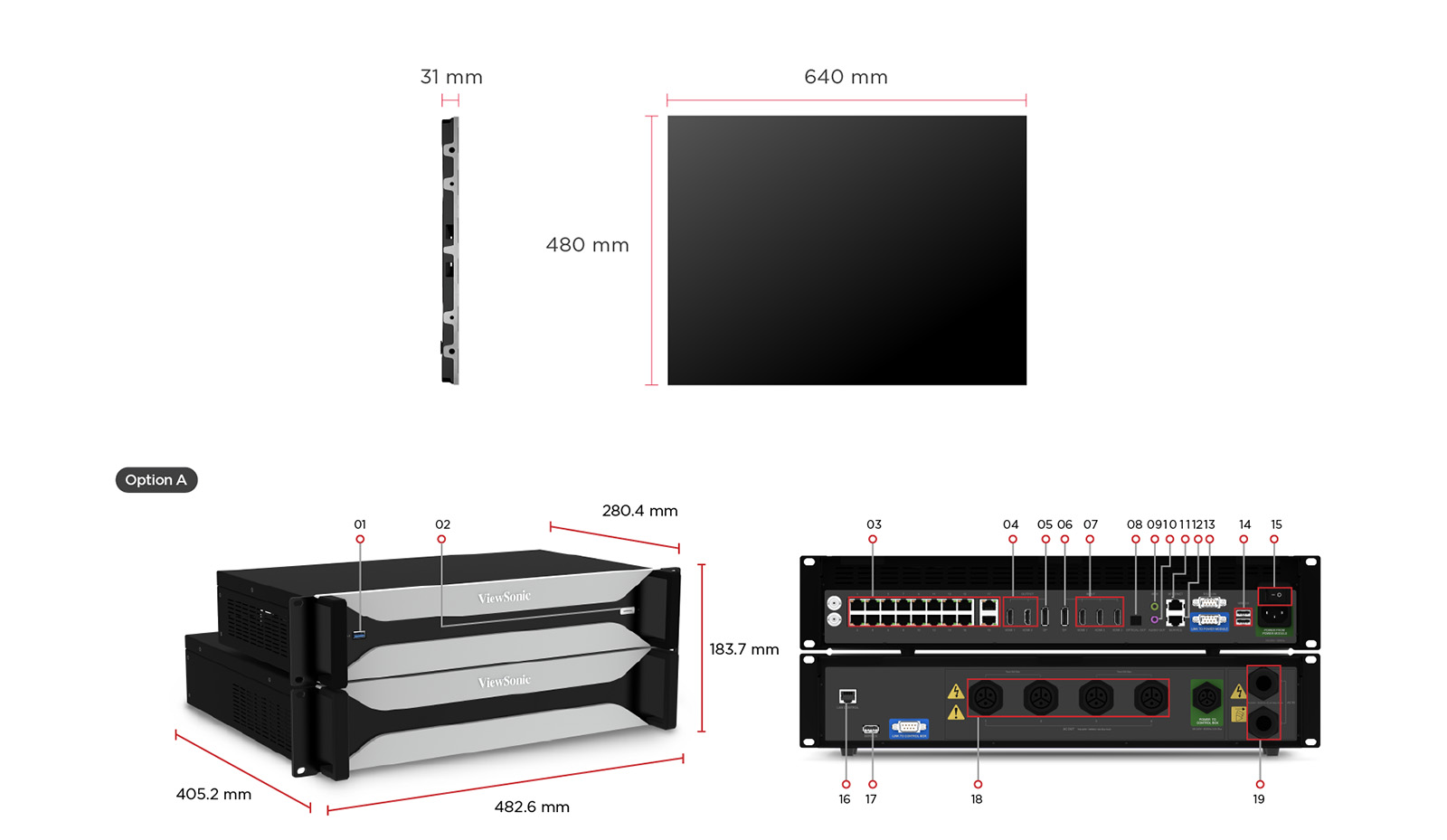 The ViewSonic LDC series is an innovative, customizable All-in-One LED display that offers flexible sizing and effortless installation—all in a single solution. Combine the LDC031-120 LED cabinet to create video walls in diverse aspect ratios and sizes, delivering compelling digital signage that brings your concepts to life. Its all-in-one design ensures a hassle-free installation process and intuitive operation. Using Glue-on-Board (GOB) surface treatment technology, the IP54-rated LED modules provide enhanced protection against collision, dust, and moisture — making it ideal for public spaces such as lobbies, shopping malls, and transportation hubs. With its slim 31mm thickness and a control box that can be detached to achieve a 99% screen-to-body ratio, this premium display offers an exceptional viewing experience with sleek aesthetics. Complete with centralized management through LAN connectivity to enhance operational efficiency.