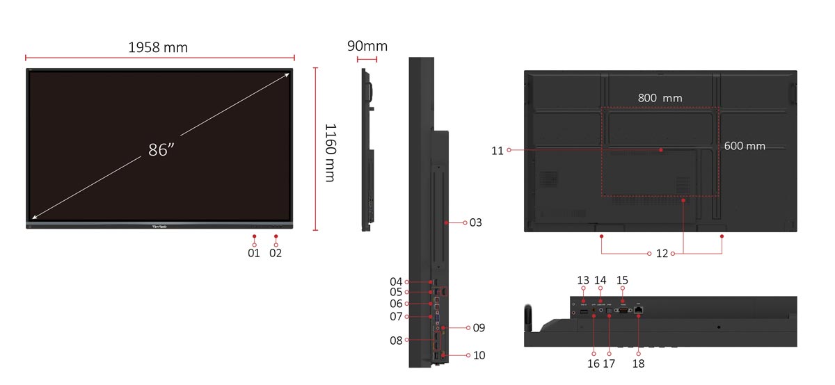 | 벽면 장착(VESA® ): | 800 x 600 |