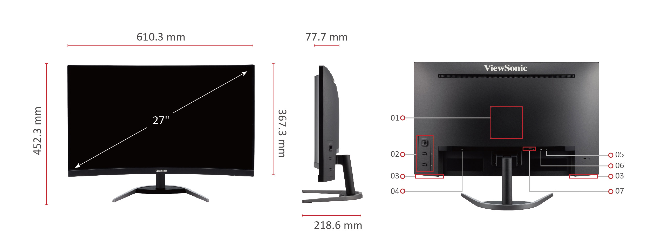 | 물리적 스탠드 미포함 (mm): | 610 x 367 x 78 |